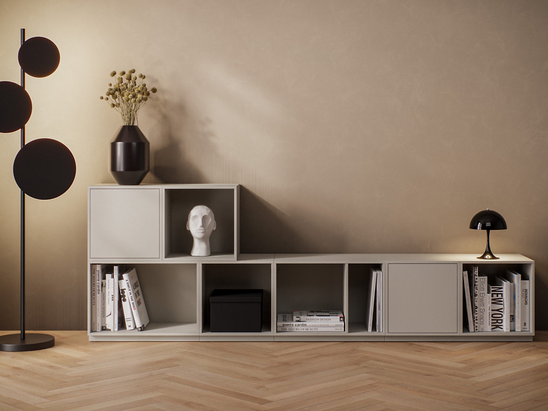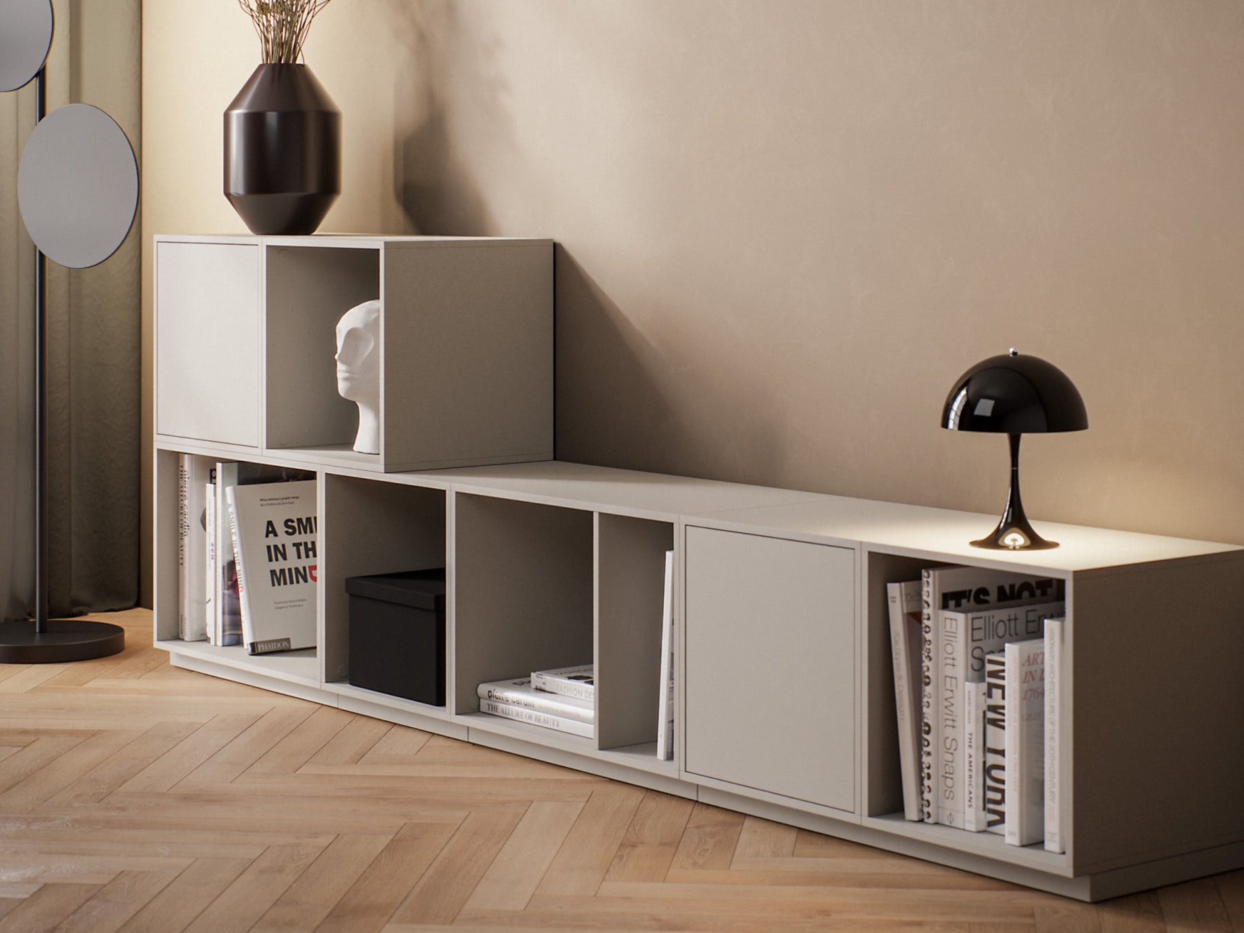 En flot lav reol som har mange anvendelsesmuligheder. Brug den som TV-reol, bogreol eller skænk.